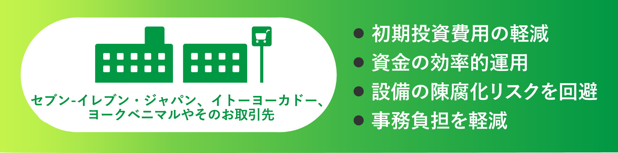 各事業会社やそのお取引先に対する設備リース(再リースや終了物件売却等も含む)の展開を通して、資産管理のサポートを実施しています。