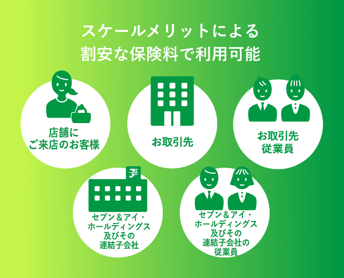 セブン-イレブン・ジャパン、イトーヨーカ堂、ヨークベニマルなどのお客様・お取引先・事業会社・従業員に対して、損害保険・生命保険の販売等を通して、万一の際の補償の充実、防災・減災等のサポートを行っています。